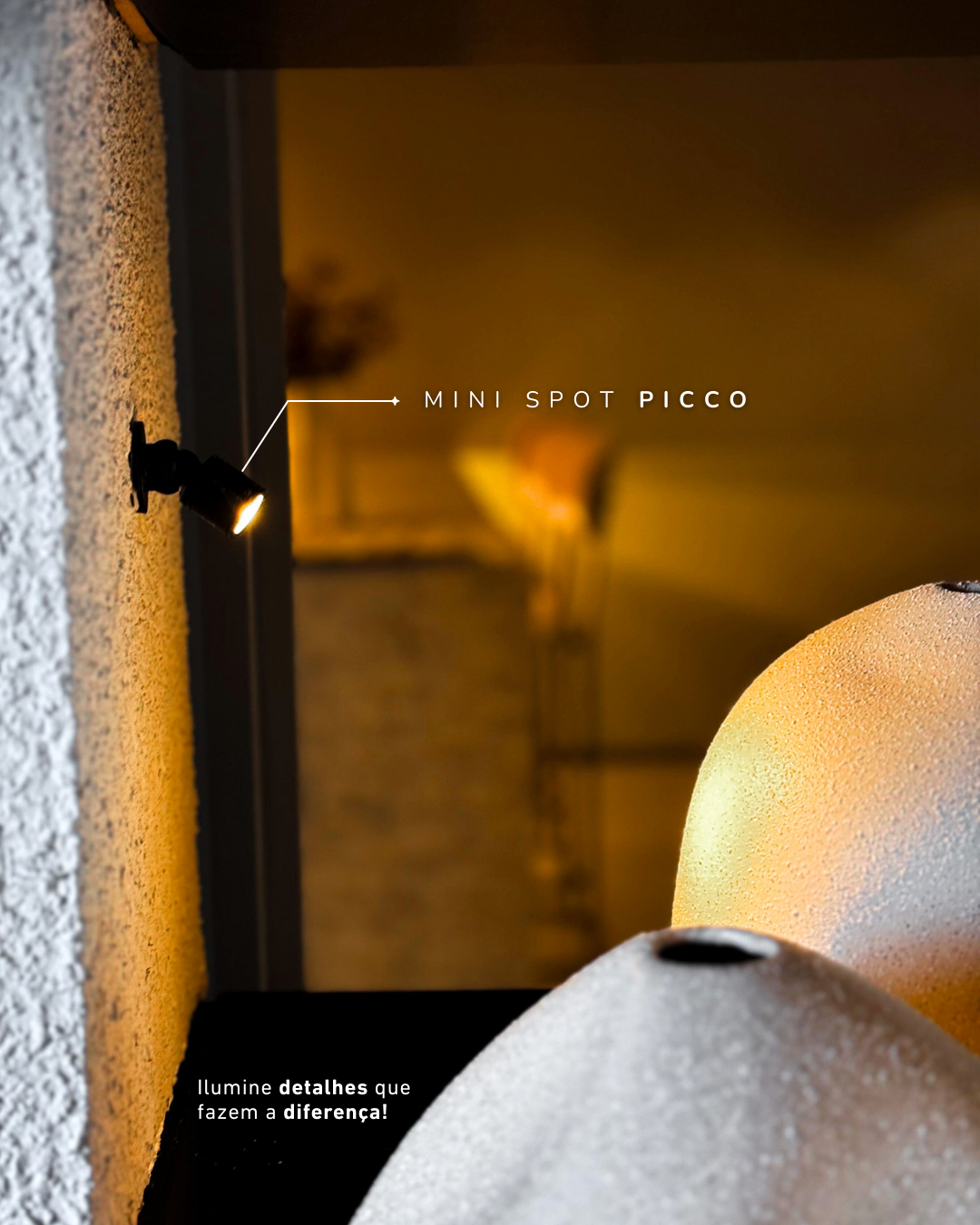 Pequeno no tamanho, gigante no efeito! O Spot Picco valoriza prateleiras e nichos com iluminação precisa e sofisticada.