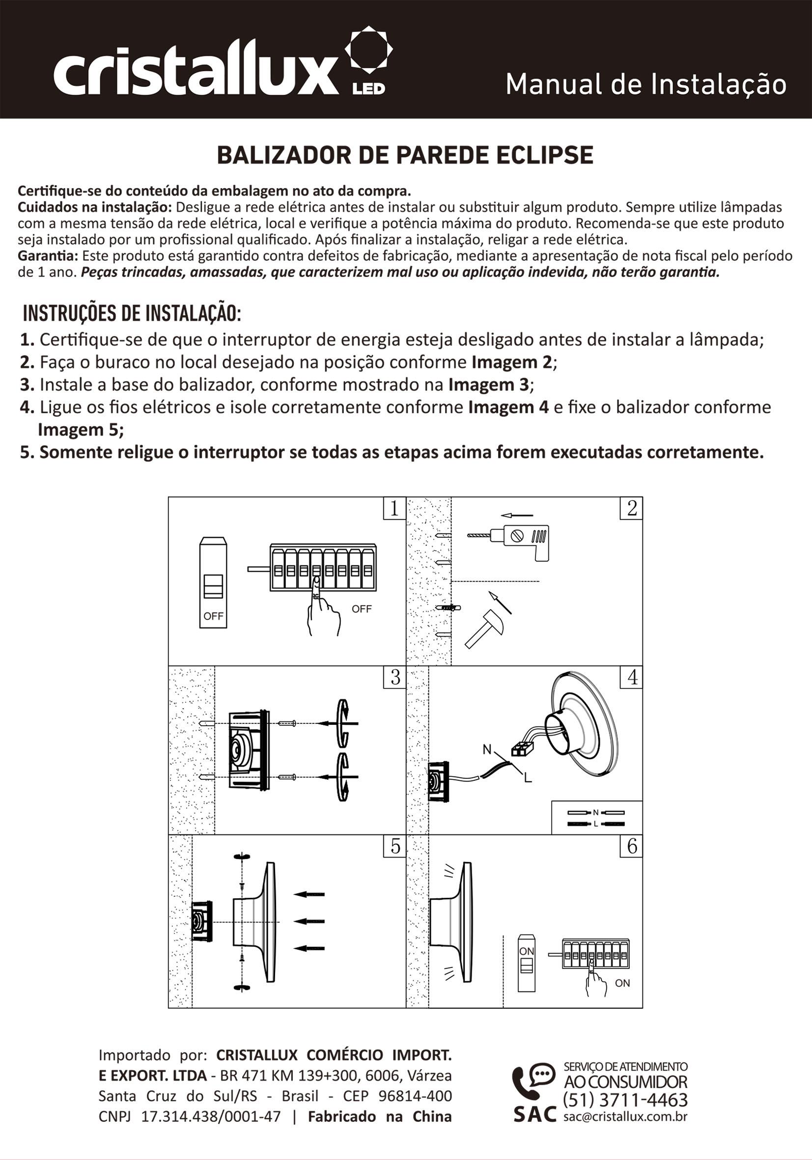 BALIZADOR CRISTALL WALL ECLIPSE BRANCO REDONDO 6W 3000K