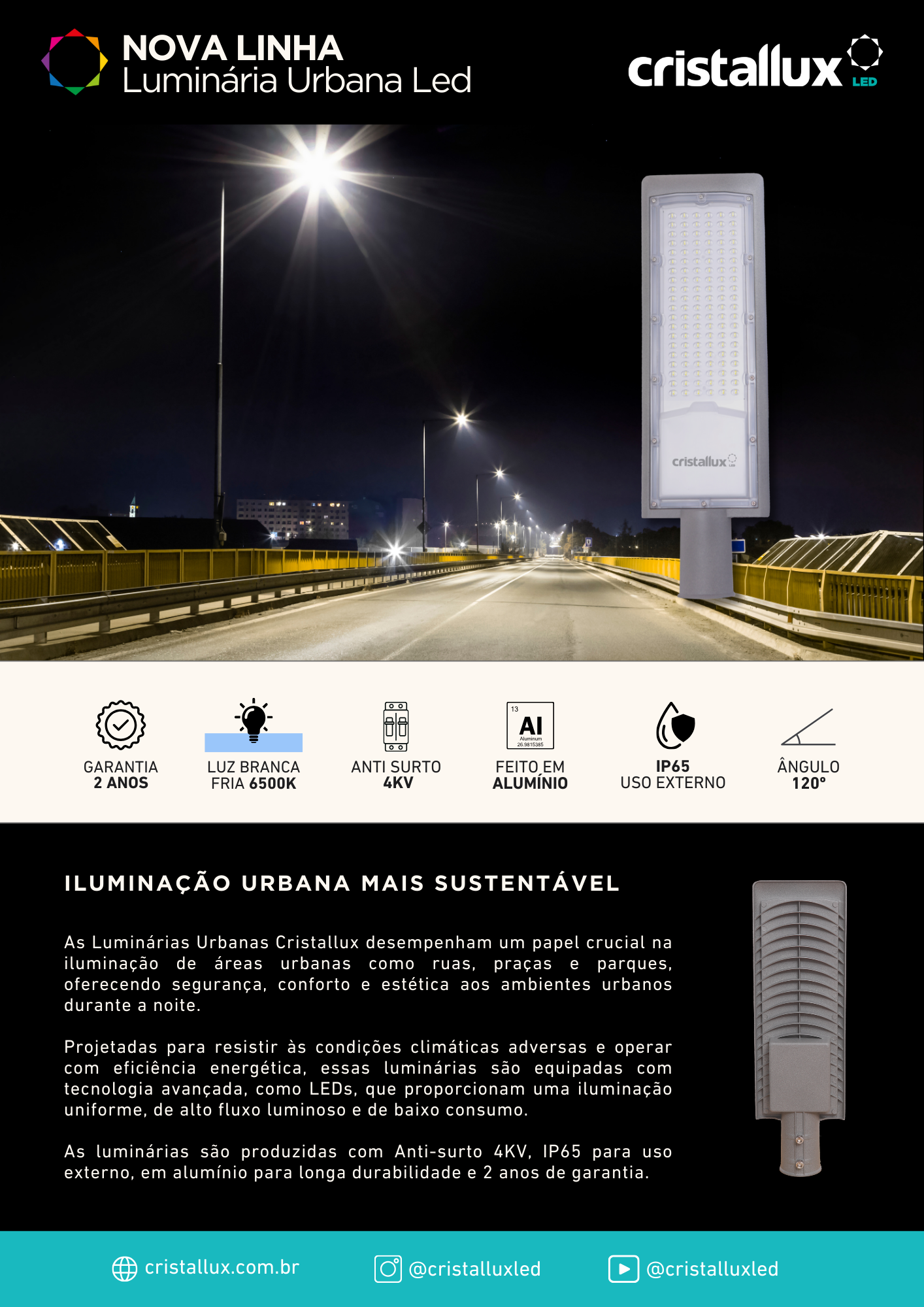 LUMINARIA URBANA LED 50W 6500K 5500 LUMENS ANTI SURTO 4KV 402X126X60MM IP65 BIV.