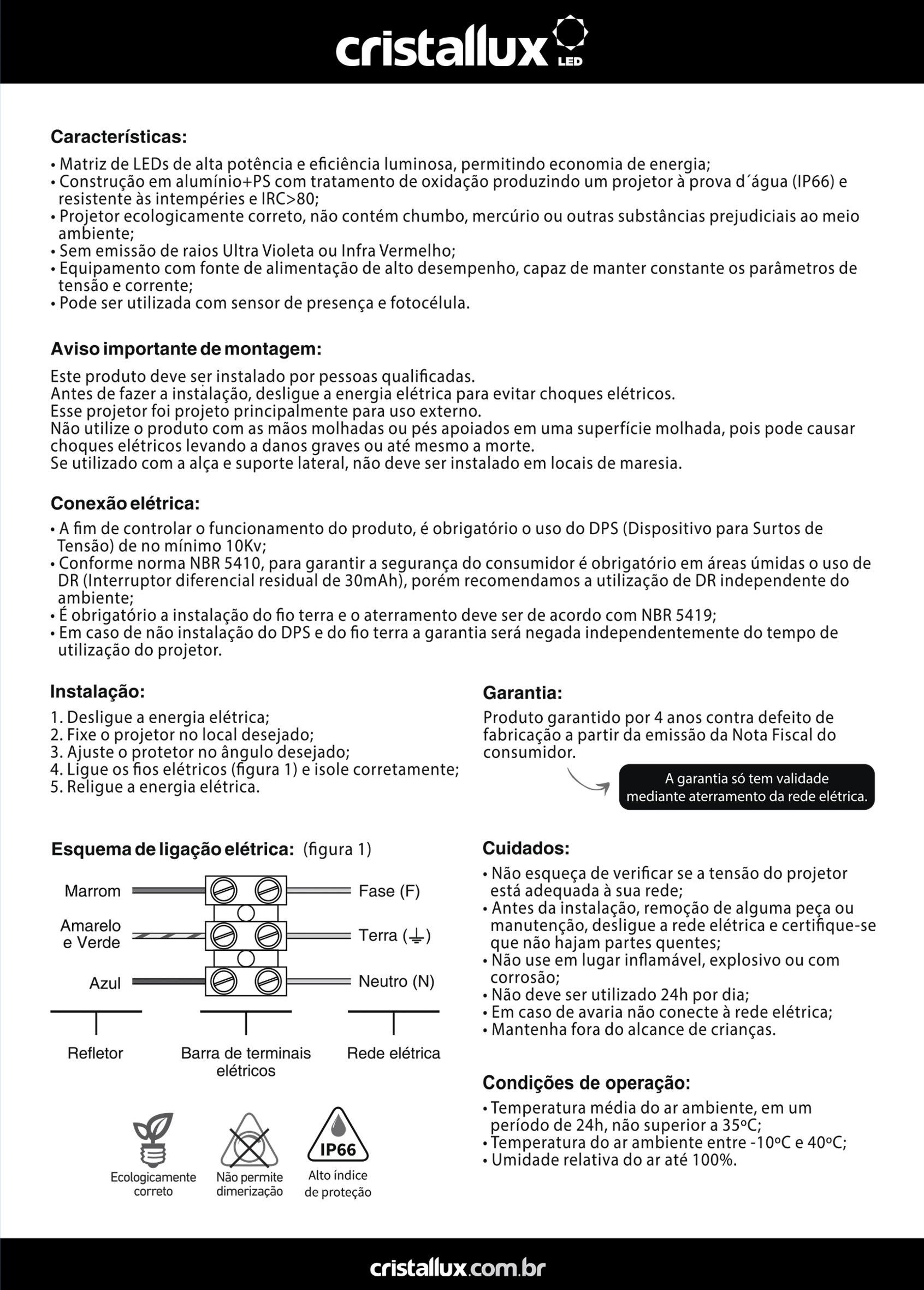 PROJETOR MODULAR 100W 5500K BIV. IP66 CRISTALLUX